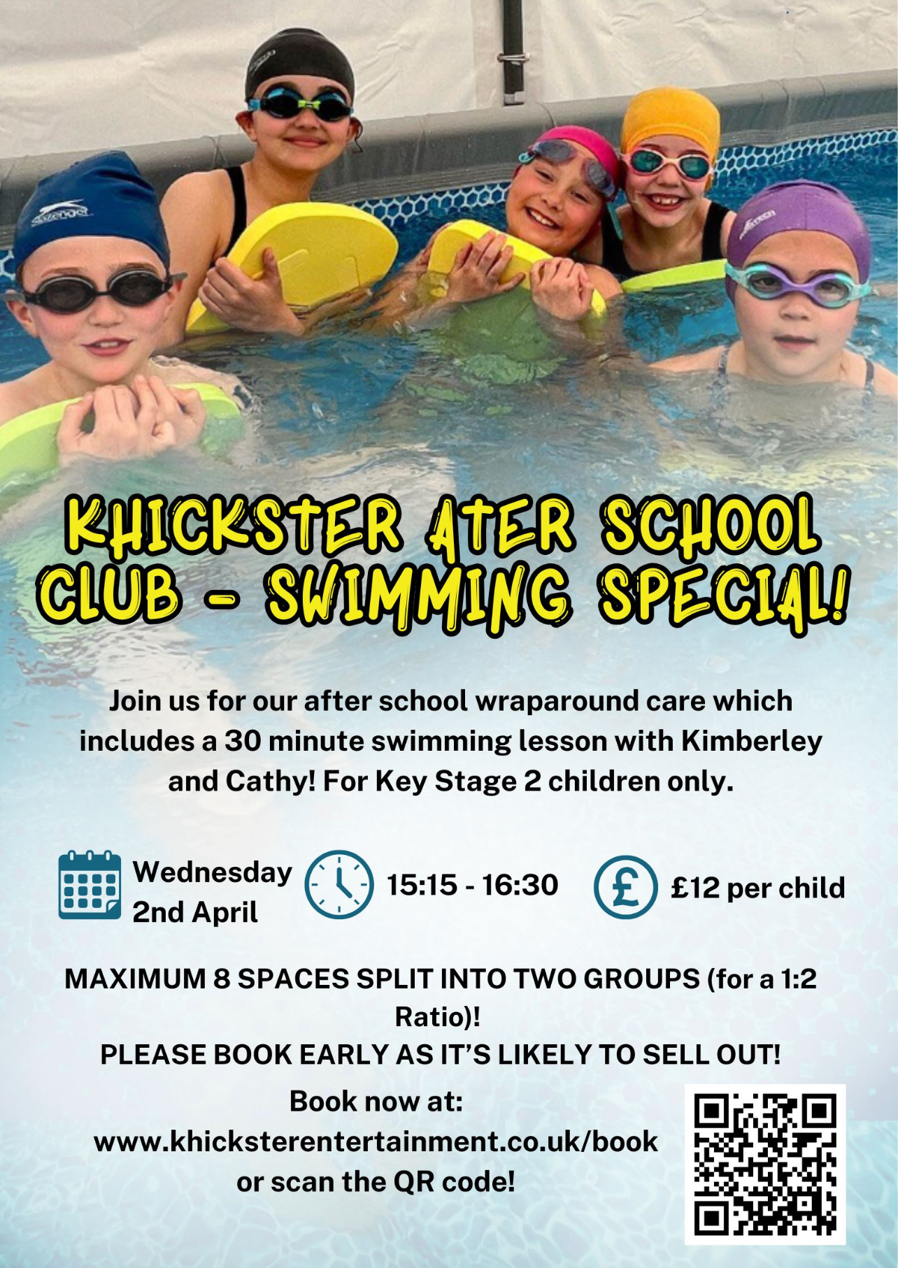 Wednesday 2nd April we are offering the chance for your child to have an additional 30 minute swimming lesson as part of our after school club.
